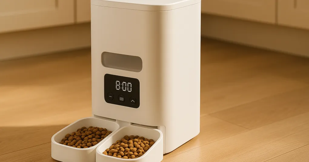 An automatic cat feeder pairs well with a cat water fountain — ensuring consistent food and water access, particularly important when cats are left alone for extended periods. For comprehensive autonomous cat care, pairing a feeder with a self-cleaning litter box covers the full daily maintenance cycle.