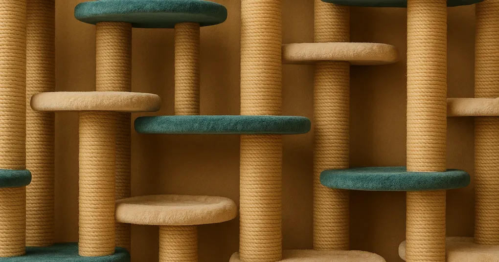 3. Sisal quality and coverage: Scratching is a species-typical behavior serving claw maintenance and territory marking (Mengoli M et al., 2013, PMID: 23427178). Full-post sisal wrapping with tight rope coiling lasts significantly longer than partial wrapping or loop-pile alternatives.