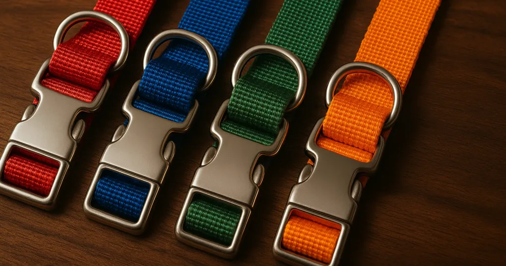 The buckle and D-ring are the structural load-bearing components of any collar. Plastic buckles are adequate for dogs under approximately 40 lbs that don’t pull aggressively. For larger dogs or strong pullers, metal hardware (aluminum, stainless steel, or brass) provides substantially better load tolerance and eliminates the UV-degradation brittleness that causes plastic buckles to fail in cold weather.