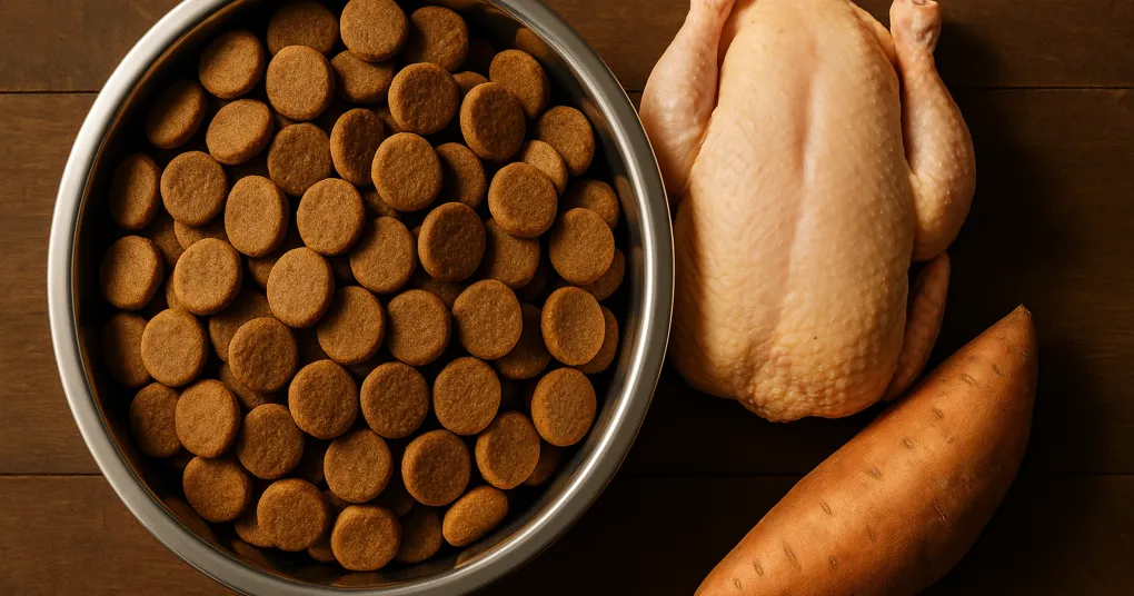 - Deboned chicken as first ingredient — whole muscle meat, highest transparency on protein sourcing