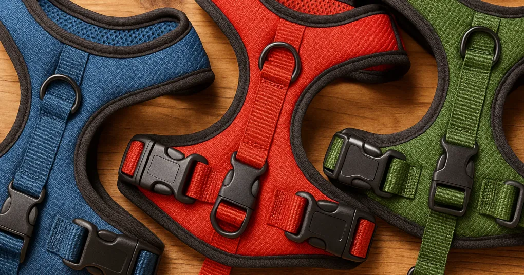 Front vs. back clip: Back-clip harnesses attach the leash at the back, which is comfortable but allows the dog to pull freely (the leash attachment is behind the dog’s center of mass). Front-clip harnesses attach at the chest, which redirects the dog toward the owner when they pull — an effective no-pull mechanism that works through gentle physics rather than discomfort.
