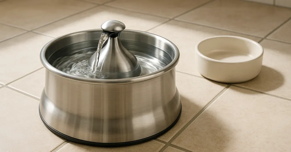 - Fountain bowls and reservoirs should be cleaned thoroughly every 1–2 weeks — daily if using wet food toppers that can contaminate the water. Filters should be replaced according to manufacturer schedules (typically every 2–4 weeks). Stainless steel fountains are easier to keep bacteria-free than plastic — plastic scratches over time create bacterial biofilm attachment points. The motor and impeller should be cleaned monthly.