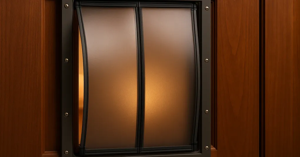 Standard dog doors rated for “large” dogs (up to 40–50 lbs) are insufficient for breeds over 70 lbs. Heavier dogs exert greater lateral force on hinges and flap seals; flap material must withstand repetitive high-force entries without cracking, delaminating, or permanently deforming. Magnetic seal closures must overcome greater air differential at larger openings. Frame anchoring to the door panel is critical — inadequately reinforced frames loosen over time with heavy breed use.