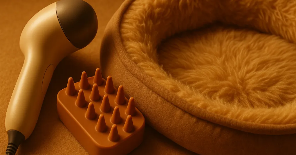 - Manual Option: Mighty Paw Silicone Massage Brush — zero electrical risk, hand-pressure-controlled (PSR 7.8/10)