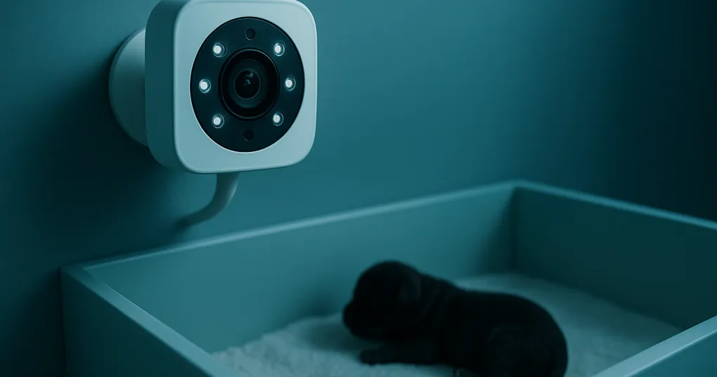 - Puppy monitoring has specific requirements beyond general pet camera use. Night vision quality is paramount since puppies sleep and feed on irregular nocturnal schedules. Two-way audio allows owners to provide voice reassurance that reduces separation anxiety during the first nights in a new home. Motion and sound alerts for nocturnal monitoring alert owners to distress events without requiring active watching. Treat dispensers support reward-based training for positive associations with a crate or whelping area. Physical safety is also more critical — cameras must be mounted out of puppy reach with no dangling cables accessible to chewing.