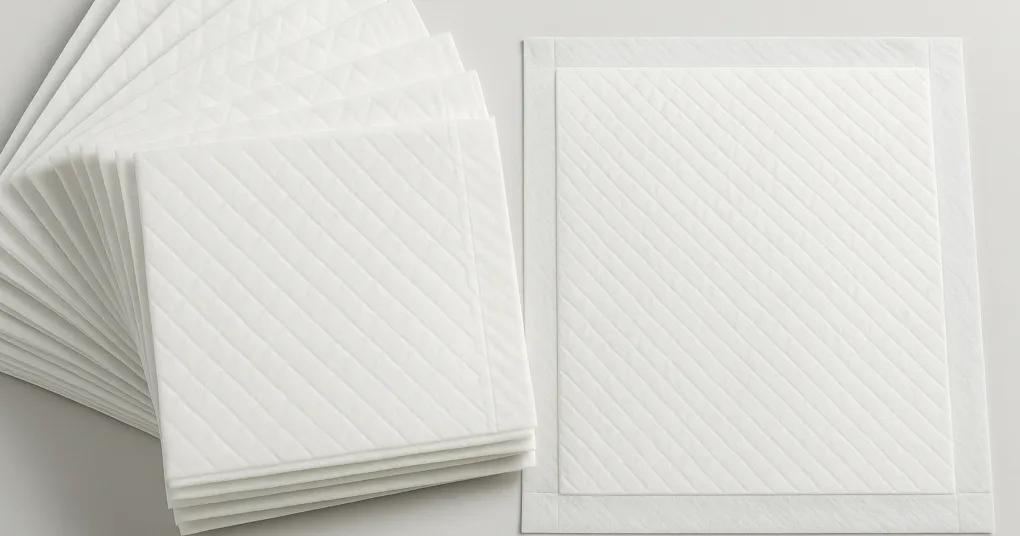 The Amazon Basics pad is the benchmark product in this category. At 23 x 23 inches, it covers the stance width of puppies and small-to-medium adult dogs. The five-layer construction starts with a quick-dry polyethylene top sheet that wicks liquid away from the surface, feeds into a distribution layer that spreads liquid across the SAP core, then the SAP core absorbs and locks it, with a leak-proof PE film bottom.
