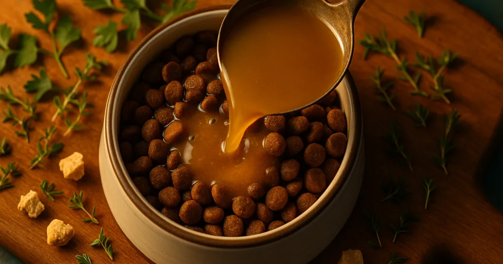 Moisture addition: Senior dogs often have reduced thirst drive and subclinical dehydration. Broth toppers add moisture to the diet — a meaningful secondary benefit beyond palatability, supporting kidney function and joint fluid maintenance.