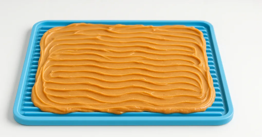 Spread fillings into the mat’s grooves and freeze flat for 2–4 hours. Frozen mats take 15–30 minutes versus 3–5 minutes fresh — ideal for extended calm activity during grooming or stressful situations.